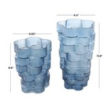 FLORERO DE VIDRIO CON DISEÑO 9"H AZUL